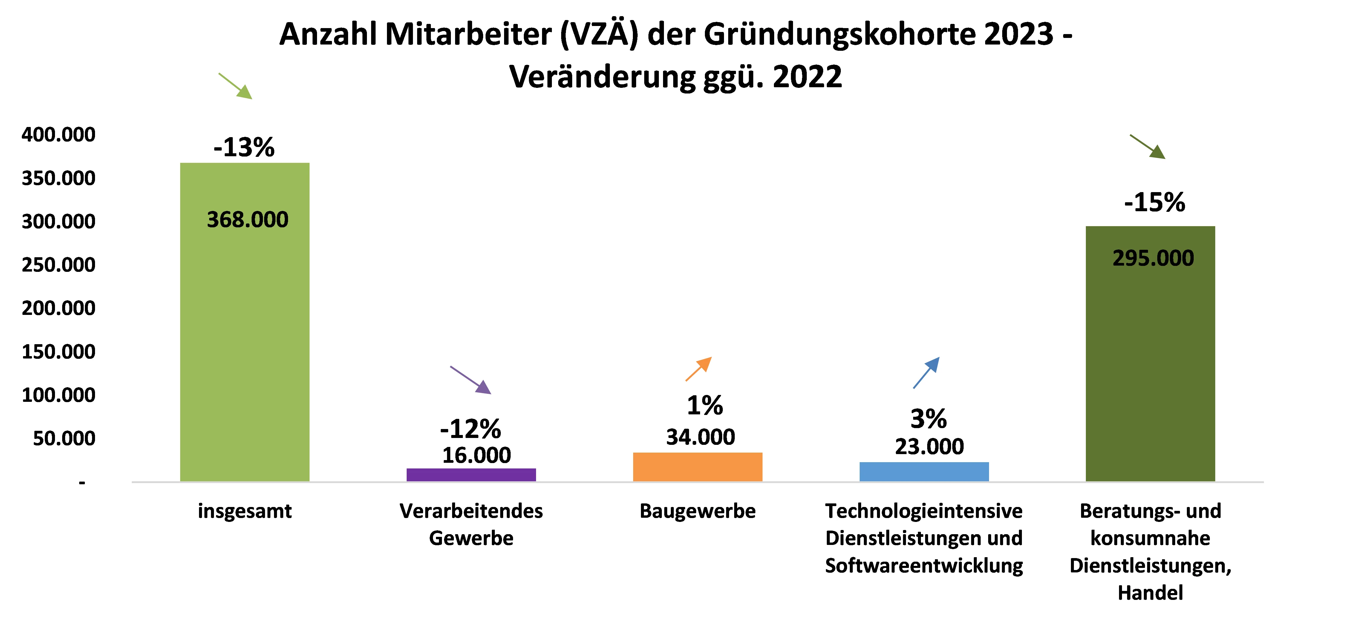 - Auch in den Dienstleistungssektoren wurden mit 318.000 VZÄ gegenüber dem Vorjahr 14 Prozent weniger Stellen durch Gründungen hervorgebracht.