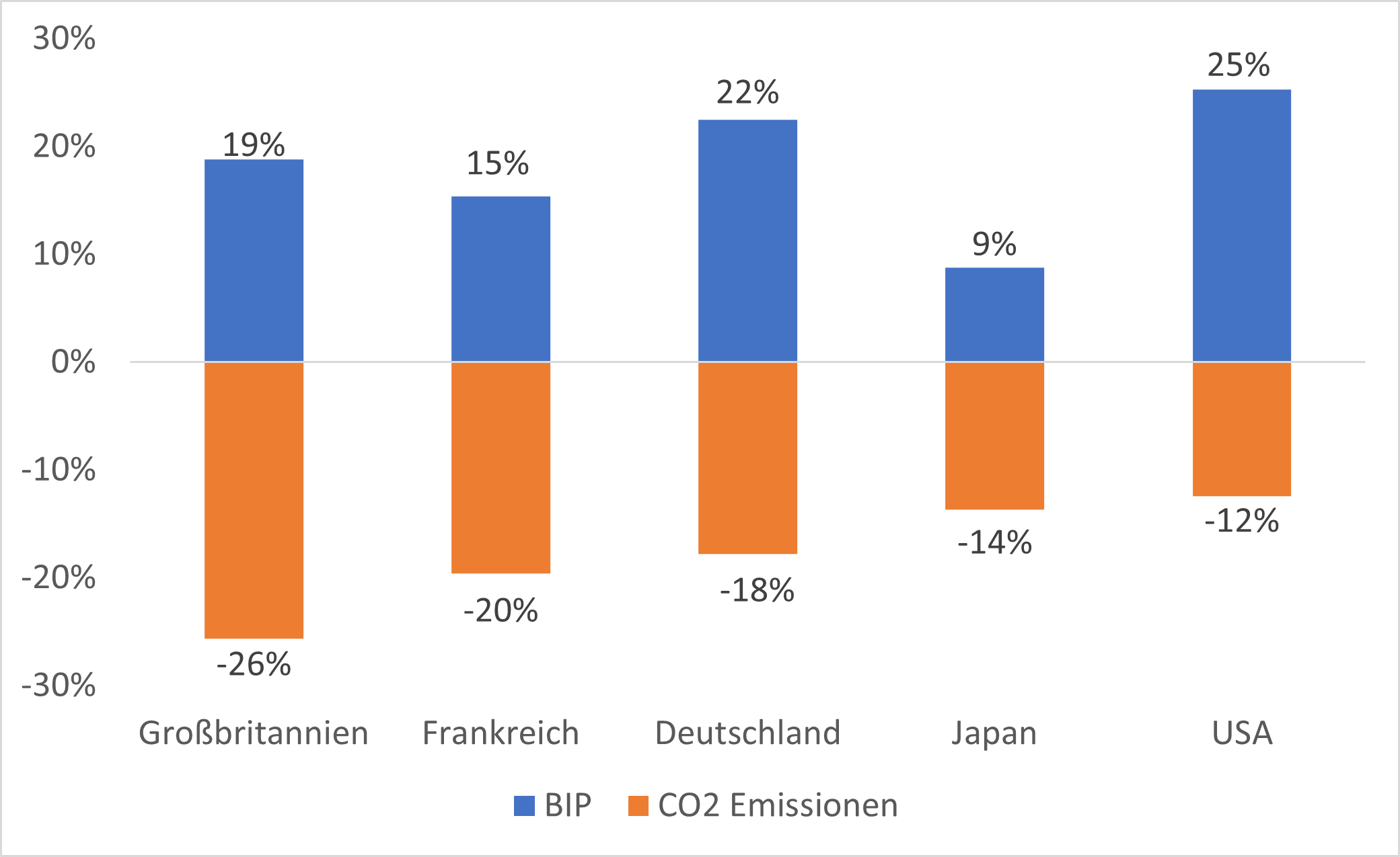 Das liegt nicht daran, dass die emissionsreichen Produktionsprozesse nach China oder in andere Länder verlagert wurden. Auch wenn man die importierten Emissionen mitzählt, hat sich der CO2-Ausstoß in diesen Ländern vom Wachstum entkoppelt.