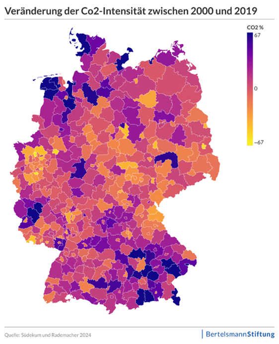 Obwohl in den letzten Jahren erste Arbeiten zu den raumwirtschaftlichen Auswirkungen der Dekarbonisierung auf EU-Ebene veröffentlicht wurden, fehlte bislang eine detaillierte Analyse zu Deutschland. Diese Lücke versucht die jüngste Studie der Bertelsmann Stiftung zu schließen.